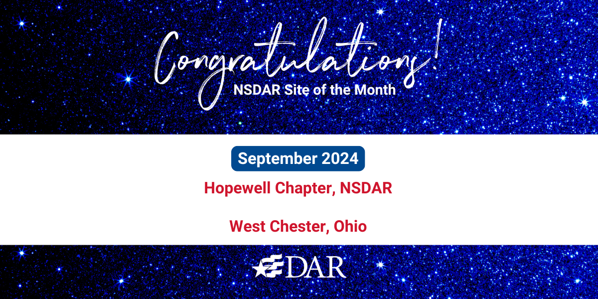 Congratulations to the Hopewell Chapter, NSDAR, from West Chester, Ohio for being selected the September Website of the Month.