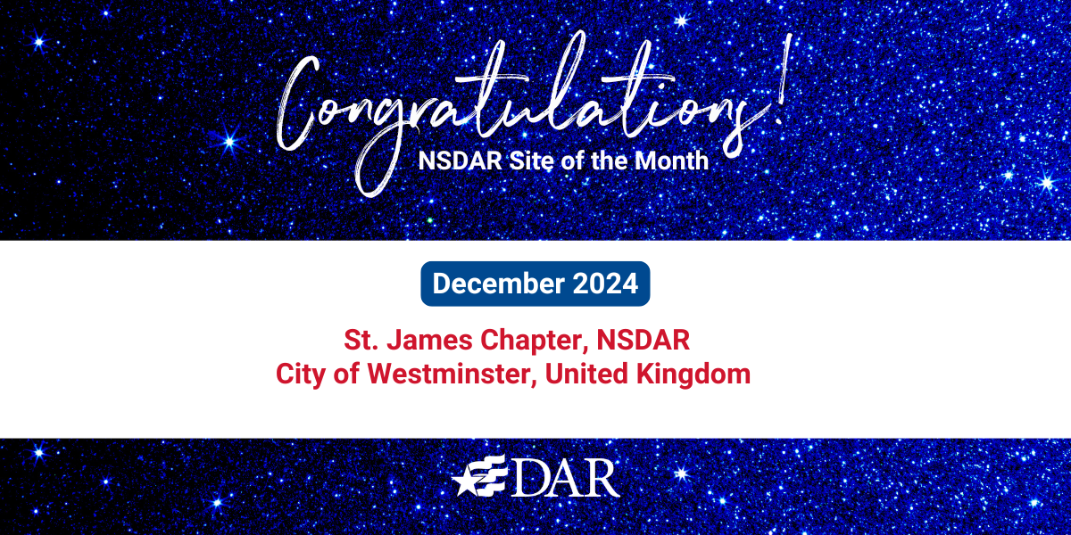 We are pleased to congratulate the St. James Chapter, NSDAR, of the City of Westminster, United Kingdom for being selected the December 2024 Website of the Month! We’re excited for you, and if some of our Daughters here in the states visit your website, they might consider becoming Associate Members.